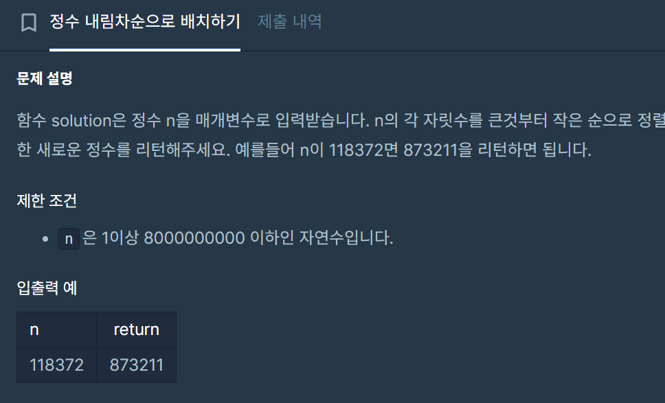 function solution(n) { return parseInt((n+'').split('').sort().reverse().join('')); }