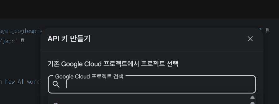 만들 프로젝트를 선택해주면 API 키가 발급된 걸 확인할 수 있다!