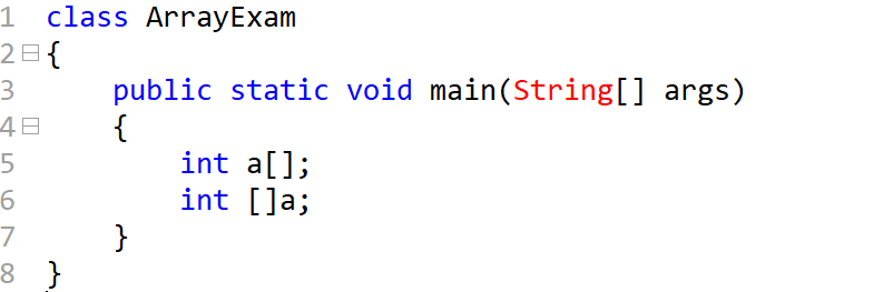 데이터형 배열변수명 [ ] ; 또는 데이터형[ ] 배열변수명;