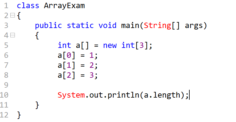 배열객체의 원소 개수인 길이는 length를 통해 알 수 있습니다.